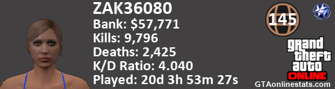 <a href="http://GTAonlinestats.com/showplayer/ZAK36080"><img src="http://GTAonlinestats.com/dmsignature/ZAK36080/sig.png" alt="ZAK36080" border="0" /></a>