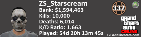 <a href="http://GTAonlinestats.com/showplayer/ZS_Starscream"><img src="http://GTAonlinestats.com/dmsignature/ZS_Starscream/sig.png" alt="ZS_Starscream" border="0" /></a>