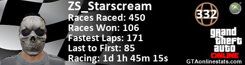 [URL=http://GTAonlinestats.com/showplayer/ZS_Starscream][IMG]http://GTAonlinestats.com/racesignature/ZS_Starscream/sig.png[/IMG][/URL]