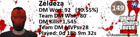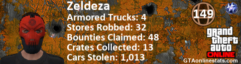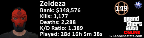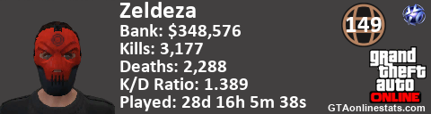 [URL=http://GTAonlinestats.com/showplayer/Zeldeza][IMG]http://GTAonlinestats.com/signature/Zeldeza/sig.png[/IMG][/URL]