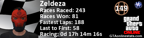 [URL=http://GTAonlinestats.com/showplayer/Zeldeza][IMG]http://GTAonlinestats.com/racesignature/Zeldeza/sig.png[/IMG][/URL]