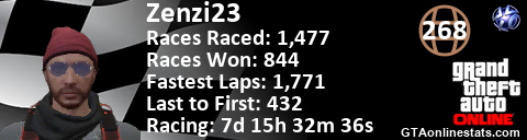 [URL=http://GTAonlinestats.com/showplayer/Zenzi23][IMG]http://GTAonlinestats.com/racesignature/Zenzi23/sig.png[/IMG][/URL]