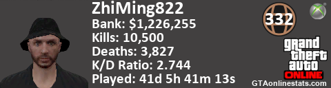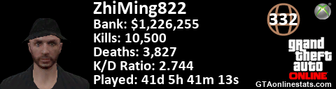 <a href="http://GTAonlinestats.com/showplayer/ZhiMing822"><img src="http://GTAonlinestats.com/signature/ZhiMing822/sig.png" alt="ZhiMing822" border="0" /></a>