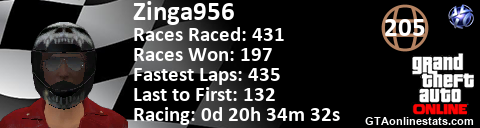 [URL=http://GTAonlinestats.com/showplayer/Zinga956][IMG]http://GTAonlinestats.com/racesignature/Zinga956/sig.png[/IMG][/URL]