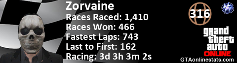 [URL=http://GTAonlinestats.com/showplayer/Zorvaine][IMG]http://GTAonlinestats.com/racesignature/Zorvaine/sig.png[/IMG][/URL]