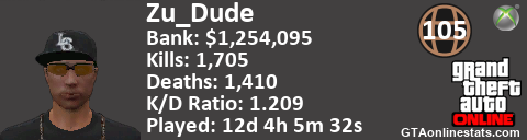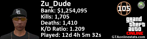 <a href="http://GTAonlinestats.com/showplayer/Zu_Dude"><img src="http://GTAonlinestats.com/signature/Zu_Dude/sig.png" alt="Zu_Dude" border="0" /></a>