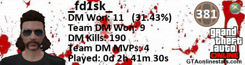 [URL=http://GTAonlinestats.com/showplayer/_fd1sk_][IMG]http://GTAonlinestats.com/signature/_fd1sk_/sig.png[/IMG][/URL]