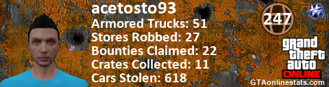 [URL=http://GTAonlinestats.com/showplayer/acetosto93][IMG]http://GTAonlinestats.com/randomsignature/acetosto93/sig.png[/IMG][/URL]