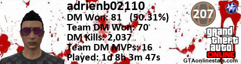 [URL=http://GTAonlinestats.com/showplayer/adrienb02110][IMG]http://GTAonlinestats.com/dmsignature/adrienb02110/sig.png[/IMG][/URL]