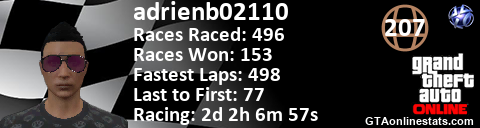 [URL=http://GTAonlinestats.com/showplayer/adrienb02110][IMG]http://GTAonlinestats.com/racesignature/adrienb02110/sig.png[/IMG][/URL]