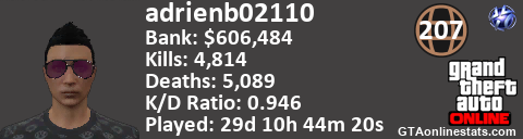 <a href="http://GTAonlinestats.com/showplayer/adrienb02110"><img src="http://GTAonlinestats.com/signature/adrienb02110/sig.png" alt="adrienb02110" border="0" /></a>
