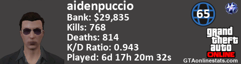 <a href="http://GTAonlinestats.com/showplayer/aidenpuccio"><img src="http://GTAonlinestats.com/randomsignature/aidenpuccio/sig.png" alt="aidenpuccio" border="0" /></a>