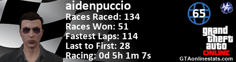 [URL=http://GTAonlinestats.com/showplayer/aidenpuccio][IMG]http://GTAonlinestats.com/racesignature/aidenpuccio/sig.png[/IMG][/URL]