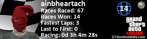 [URL=http://GTAonlinestats.com/showplayer/ainbheartach/2][IMG]http://GTAonlinestats.com/racesignature/ainbheartach/2/sig.png[/IMG][/URL]