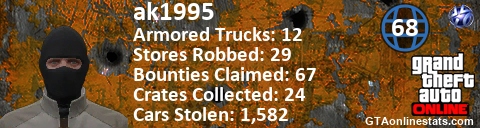 <a href="http://GTAonlinestats.com/showplayer/ak1995"><img src="http://GTAonlinestats.com/randomsignature/ak1995/sig.png" alt="ak1995" border="0" /></a>