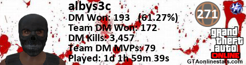 [URL=http://GTAonlinestats.com/showplayer/albys3c][IMG]http://GTAonlinestats.com/dmsignature/albys3c/sig.png[/IMG][/URL]