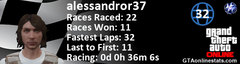 <a href="http://GTAonlinestats.com/showplayer/alessandror37"><img src="http://GTAonlinestats.com/racesignature/alessandror37/sig.png" alt="alessandror37" border="0" /></a>