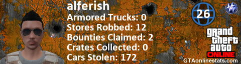 [URL=http://GTAonlinestats.com/showplayer/alferish][IMG]http://GTAonlinestats.com/randomsignature/alferish/sig.png[/IMG][/URL]