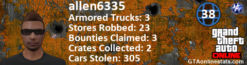 [URL=http://GTAonlinestats.com/showplayer/allen6335][IMG]http://GTAonlinestats.com/crimesignature/allen6335/sig.png[/IMG][/URL]