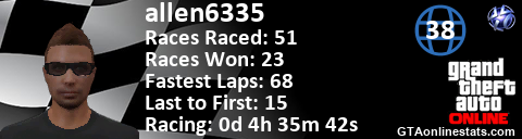 <a href="http://GTAonlinestats.com/showplayer/allen6335"><img src="http://GTAonlinestats.com/racesignature/allen6335/sig.png" alt="allen6335" border="0" /></a>