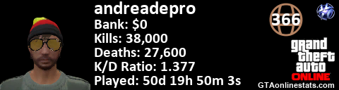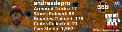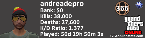 [URL=http://GTAonlinestats.com/showplayer/andreadepro][IMG]http://GTAonlinestats.com/randomsignature/andreadepro/sig.png[/IMG][/URL]