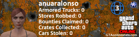 [URL=http://GTAonlinestats.com/showplayer/anuaralonso/2][IMG]http://GTAonlinestats.com/crimesignature/anuaralonso/2/sig.png[/IMG][/URL]