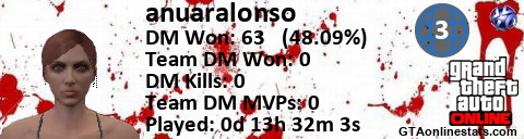 [URL=http://GTAonlinestats.com/showplayer/anuaralonso/2][IMG]http://GTAonlinestats.com/dmsignature/anuaralonso/2/sig.png[/IMG][/URL]