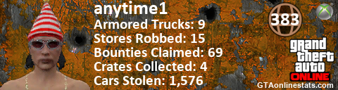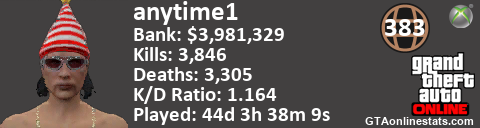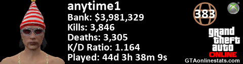 [URL=http://GTAonlinestats.com/showplayer/anytime1][IMG]http://GTAonlinestats.com/signature/anytime1/sig.png[/IMG][/URL]