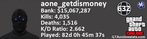 <a href="http://GTAonlinestats.com/showplayer/aone_getdismoney"><img src="http://GTAonlinestats.com/dmsignature/aone_getdismoney/sig.png" alt="aone_getdismoney" border="0" /></a>