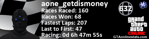 <a href="http://GTAonlinestats.com/showplayer/aone_getdismoney"><img src="http://GTAonlinestats.com/racesignature/aone_getdismoney/sig.png" alt="aone_getdismoney" border="0" /></a>