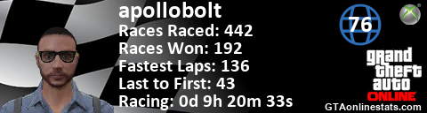 <a href="http://GTAonlinestats.com/showplayer/apollobolt"><img src="http://GTAonlinestats.com/racesignature/apollobolt/sig.png" alt="apollobolt" border="0" /></a>
