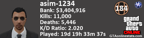 [URL=http://GTAonlinestats.com/showplayer/asim-1234][IMG]http://GTAonlinestats.com/signature/asim-1234/sig.png[/IMG][/URL]