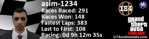 [URL=http://GTAonlinestats.com/showplayer/asim-1234][IMG]http://GTAonlinestats.com/racesignature/asim-1234/sig.png[/IMG][/URL]