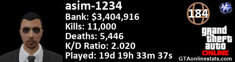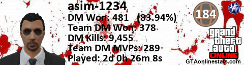 [URL=http://GTAonlinestats.com/showplayer/asim-1234][IMG]http://GTAonlinestats.com/dmsignature/asim-1234/sig.png[/IMG][/URL]