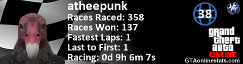 [URL=http://GTAonlinestats.com/showplayer/atheepunk/2][IMG]http://GTAonlinestats.com/racesignature/atheepunk/2/sig.png[/IMG][/URL]
