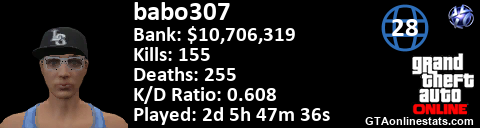 <a href="http://GTAonlinestats.com/showplayer/babo307"><img src="http://GTAonlinestats.com/dmsignature/babo307/sig.png" alt="babo307" border="0" /></a>
