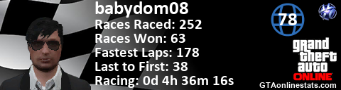 <a href="http://GTAonlinestats.com/showplayer/babydom08"><img src="http://GTAonlinestats.com/racesignature/babydom08/sig.png" alt="Babydom08" border="0" /></a>