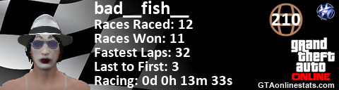 <a href="http://GTAonlinestats.com/showplayer/bad__fish__"><img src="http://GTAonlinestats.com/racesignature/bad__fish__/sig.png" alt="bad__fish__" border="0" /></a>