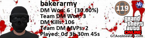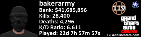 <a href="http://GTAonlinestats.com/showplayer/bakerarmy"><img src="http://GTAonlinestats.com/randomsignature/bakerarmy/sig.png" alt="bakerarmy" border="0" /></a>