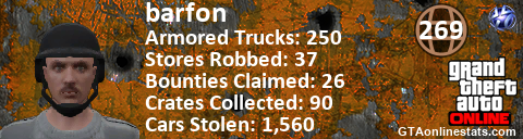 [URL=http://GTAonlinestats.com/showplayer/barfon][IMG]http://GTAonlinestats.com/signature/barfon/sig.png[/IMG][/URL]