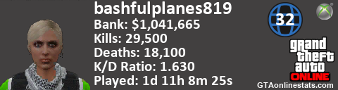 <a href="http://GTAonlinestats.com/showplayer/bashfulplanes819/3"><img src="http://GTAonlinestats.com/dmsignature/bashfulplanes819/3/sig.png" alt="bashfulplanes819" border="0" /></a>