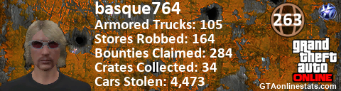 <a href="http://GTAonlinestats.com/showplayer/basque764"><img src="http://GTAonlinestats.com/crimesignature/basque764/sig.png" alt="basque764" border="0" /></a>