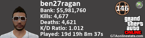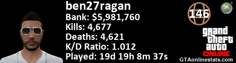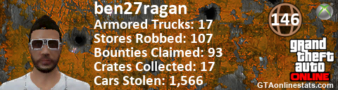 [URL=http://GTAonlinestats.com/showplayer/ben27ragan][IMG]http://GTAonlinestats.com/signature/ben27ragan/sig.png[/IMG][/URL]