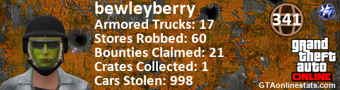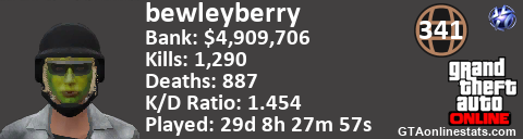 <a href="http://GTAonlinestats.com/showplayer/bewleyberry"><img src="http://GTAonlinestats.com/randomsignature/bewleyberry/sig.png" alt="bewleyberry" border="0" /></a>