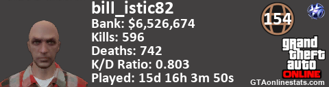 <a href="http://GTAonlinestats.com/showplayer/bill_istic82"><img src="http://GTAonlinestats.com/dmsignature/bill_istic82/sig.png" alt="bill_istic82" border="0" /></a>