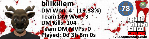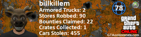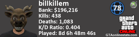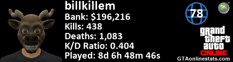 <a href="http://GTAonlinestats.com/showplayer/billkillem"><img src="http://GTAonlinestats.com/dmsignature/billkillem/sig.png" alt="billkillem" border="0" /></a>