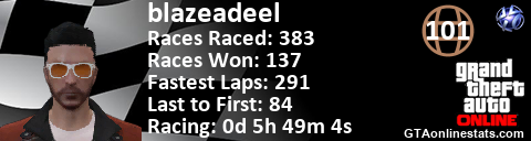 [URL=http://GTAonlinestats.com/showplayer/blazeadeel][IMG]http://GTAonlinestats.com/racesignature/blazeadeel/sig.png[/IMG][/URL]