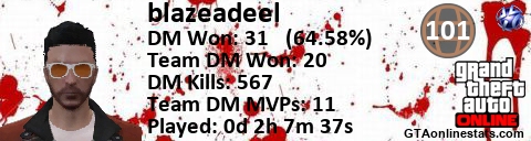 [URL=http://GTAonlinestats.com/showplayer/blazeadeel][IMG]http://GTAonlinestats.com/dmsignature/blazeadeel/sig.png[/IMG][/URL]