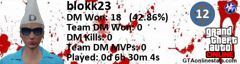[URL=http://GTAonlinestats.com/showplayer/blokk23/2][IMG]http://GTAonlinestats.com/dmsignature/blokk23/2/sig.png[/IMG][/URL]