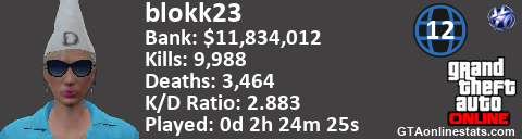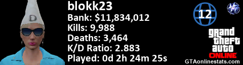 <a href="http://GTAonlinestats.com/showplayer/blokk23/2"><img src="http://GTAonlinestats.com/signature/blokk23/2/sig.png" alt="blokk23" border="0" /></a>